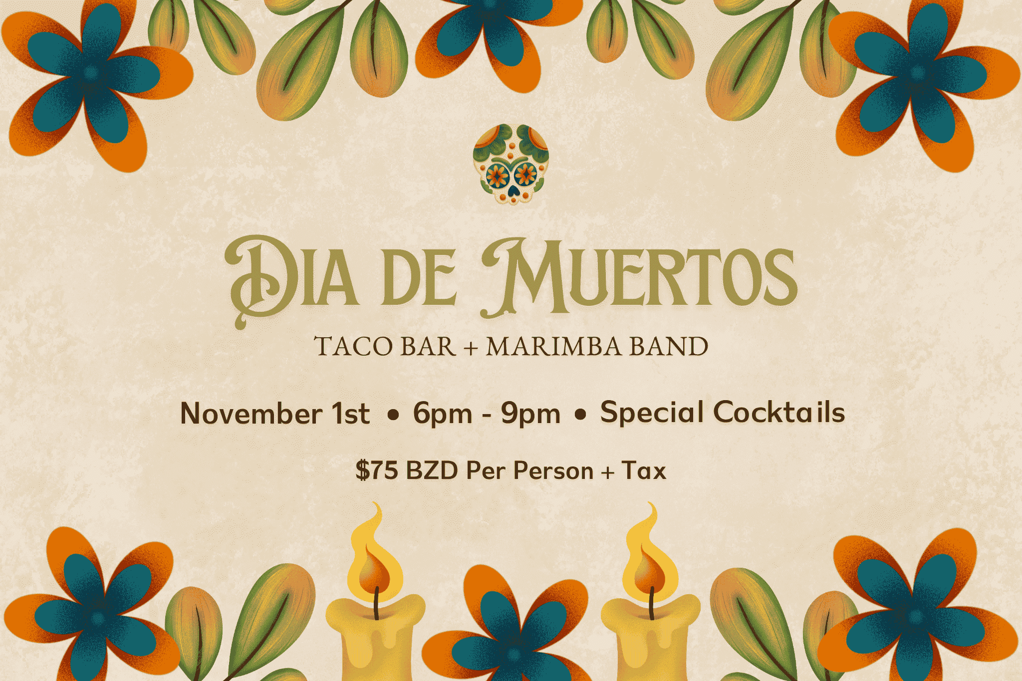 Día de Muertos en The Grove House Venga a celebrar el Día de Muertos en The Rainforest Lodge at Sleeping Giant con nuestro festivo bar de tacos. Disfrute de deliciosos sabores auténticos, empápese del ambiente colorido y animado, y pase una velada divertida en honor a esta trad